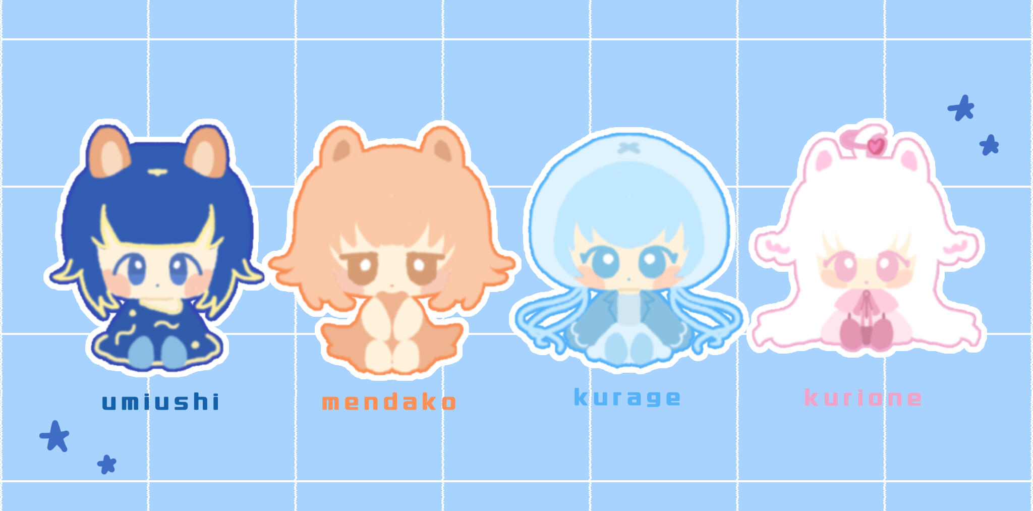 海の生き物の擬人化。 海の中でのんびりいろんな子が暮らしているよ。